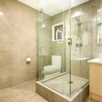 This one-bedroom family unit includes a separate bedroom with a lounge and full kitchen, one queen-size bed, and two single beds.